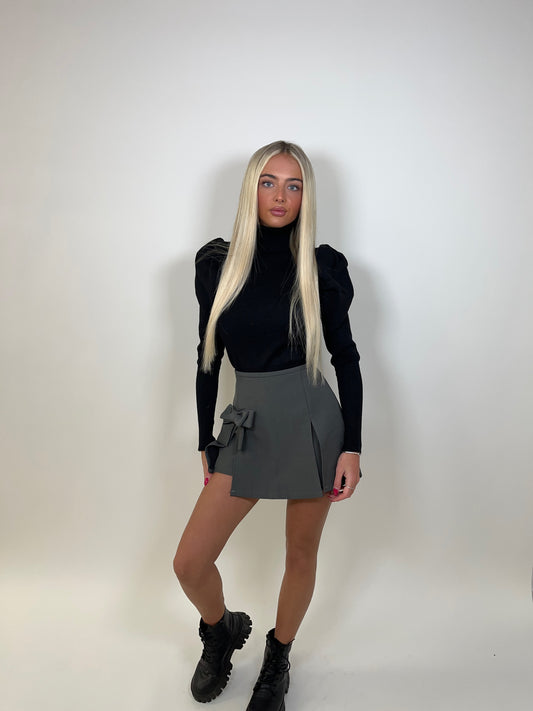 Black high neck puff sleeve ribbed jumper