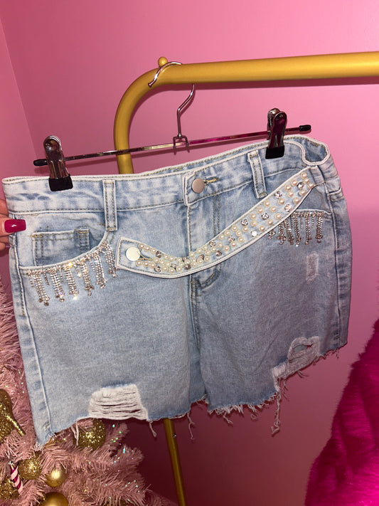 Sold outDenim pearl tassel shorts
