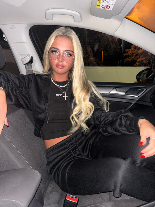 Sold outBlack ruched sleeve tracksuit