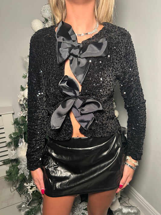 Black sequins bow blazer