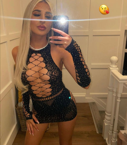 Black sequins with silver sparkle cut out back dress