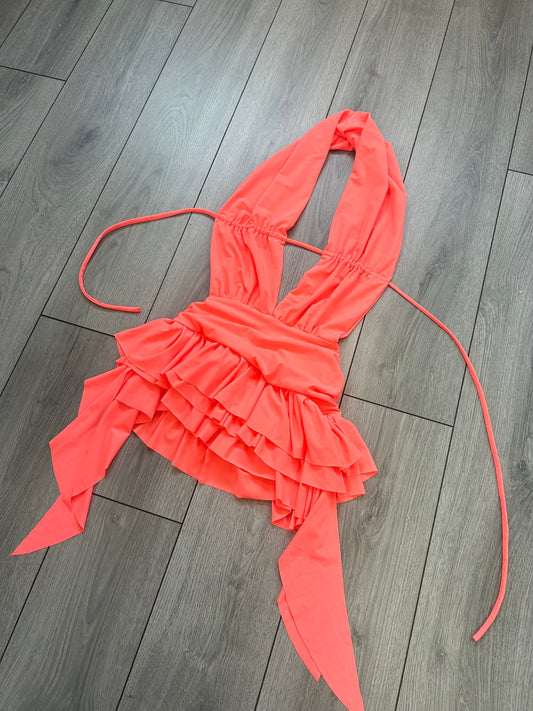 LIMITED EDITION HAND MADE AND DESIGNED IN HOUSE: ‘Lily’ Coral frill dress