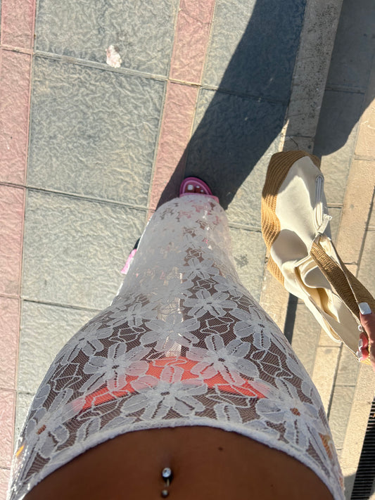 LIMITED EDITION HAND MADE AND DESIGNED IN HOUSE: Off white lace cover up maxi skirt
