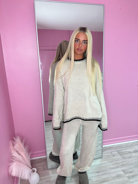 Contrast knitted jumper and wide leg trouser set